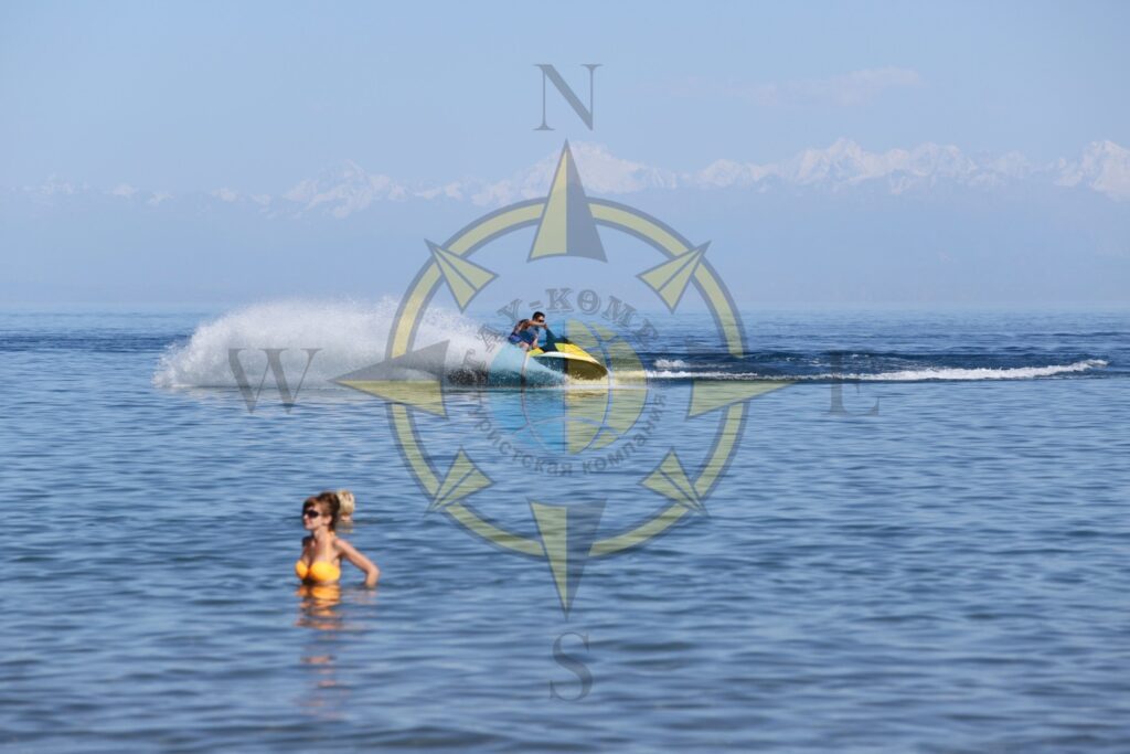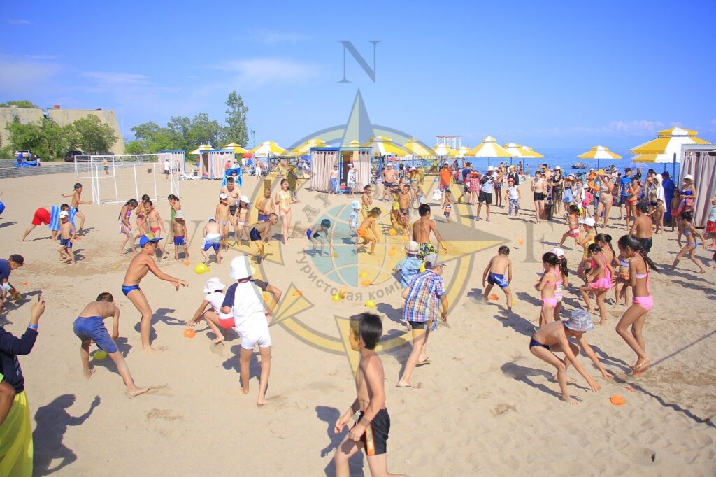 гидроциклы, полеты с парашютом, катание на водном банане, пляжный футбол. Для любителей менее активного отдыха на пляже установлены шатры.