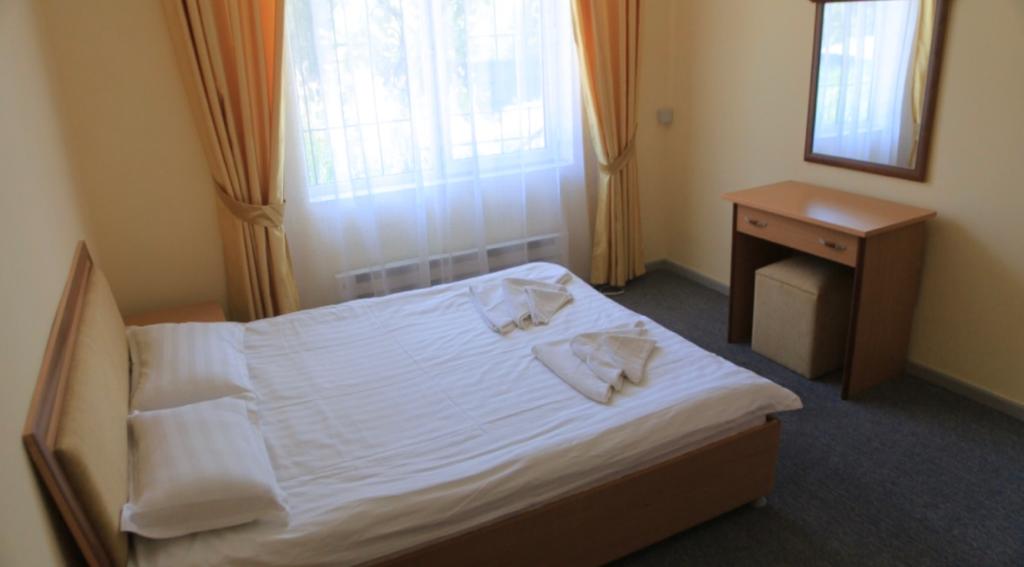 Корпус. Два трехэтажных корпуса. Номера все 2-х местные, просторные светлые комнаты с большими окнами, можно поставить дополнительное место. На первом этаже номера без балконов, с двуспальными кроватями. На втором и третьем этажах номера с балконами и раздельными кроватями. В каждом номере два кресла, журнальный столик, TV, холодильник, ванная комната с санузлом и душем, горячая вода круглосуточно (аристон), чайный набор (эл.чайник, посуда).