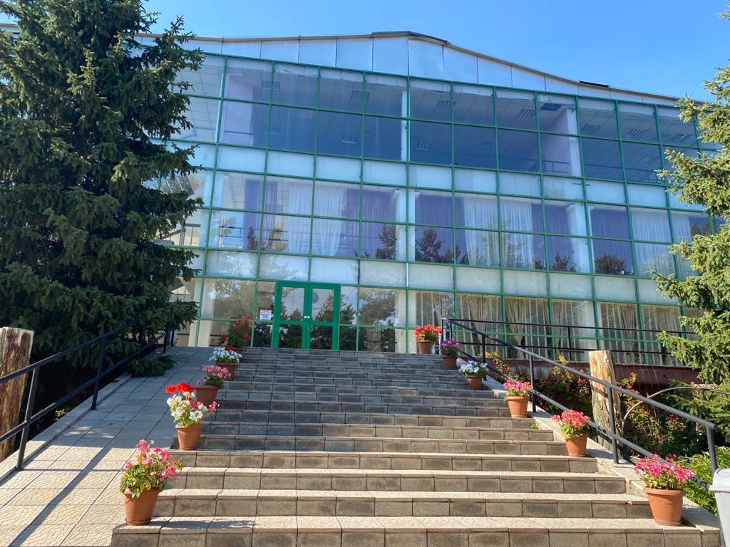 Территория. Охраняемая, так же есть автостоянка. Территория пансионата составляет 10 га и утопает в зелени сосновых, березовых и тополиных аллей.