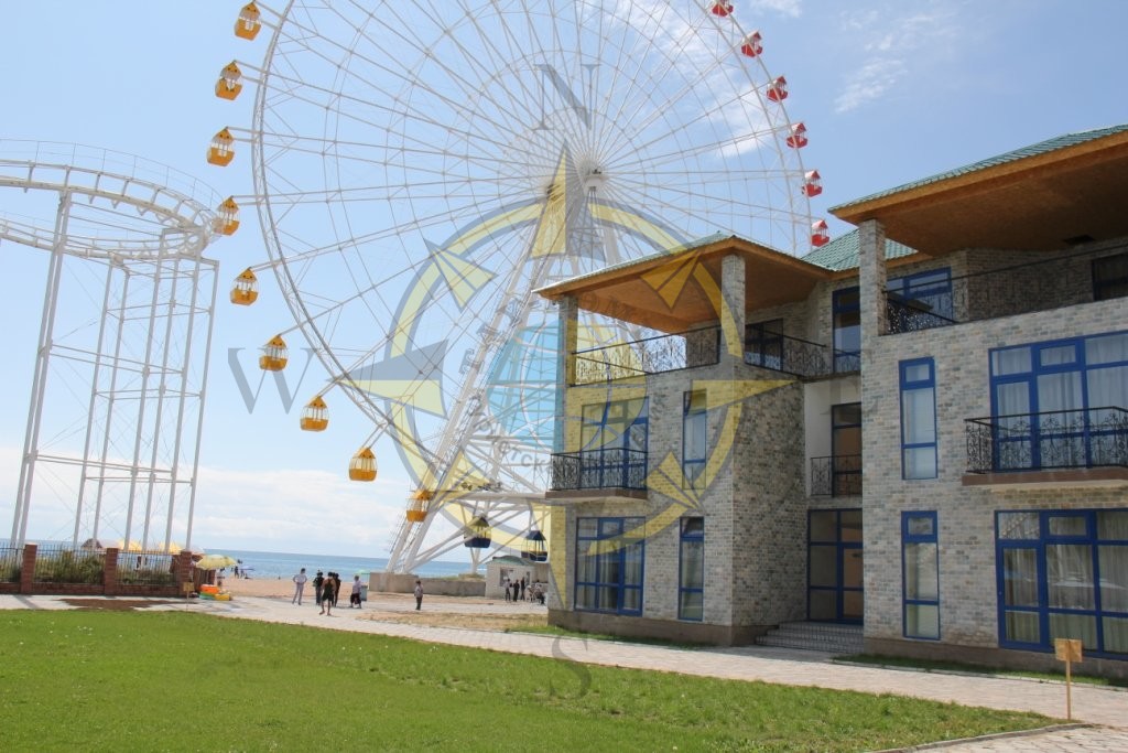 Пляж: до него 30 метров, все виды водных развлечений: парашют, скутера, дайвинг, катамараны, Аквапарк 3 водные горки, аттракционы «Американские горки» и «Колесо обозрения», оборудован зонтиками и шезлонгами.