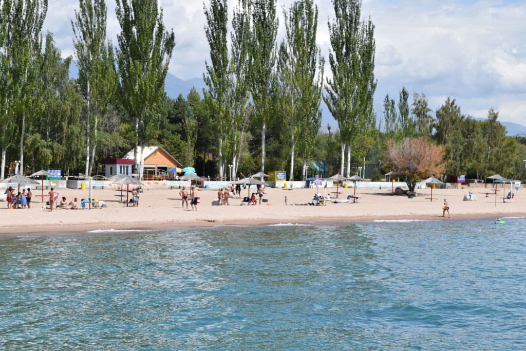 На автобусе (с откидными креслами или спальном) — в летнее время каждый день с Алматы выезжают автобусы на Иссык-Куль. В пути в среднем 8-9 часов. В связи с ограничениями на границе, необходим пеший переход через границу, далее пересадка на другой автобус. Забронировать и получить информацию можно тут